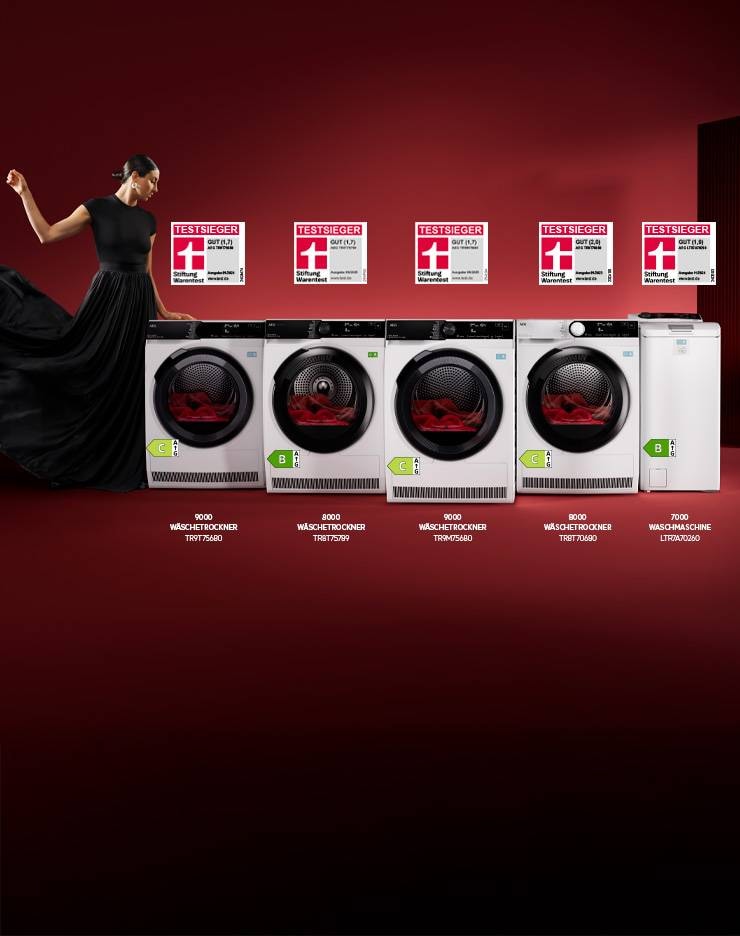 Der AEG 9000 AbsoluteCare® Trockner TR9M75680 wurde im aktuellen Wäschetrockner-Test der Stiftung Warentest (09/2025) mit der Gesamtnote 1,7 als Testsieger ausgezeichnet.
