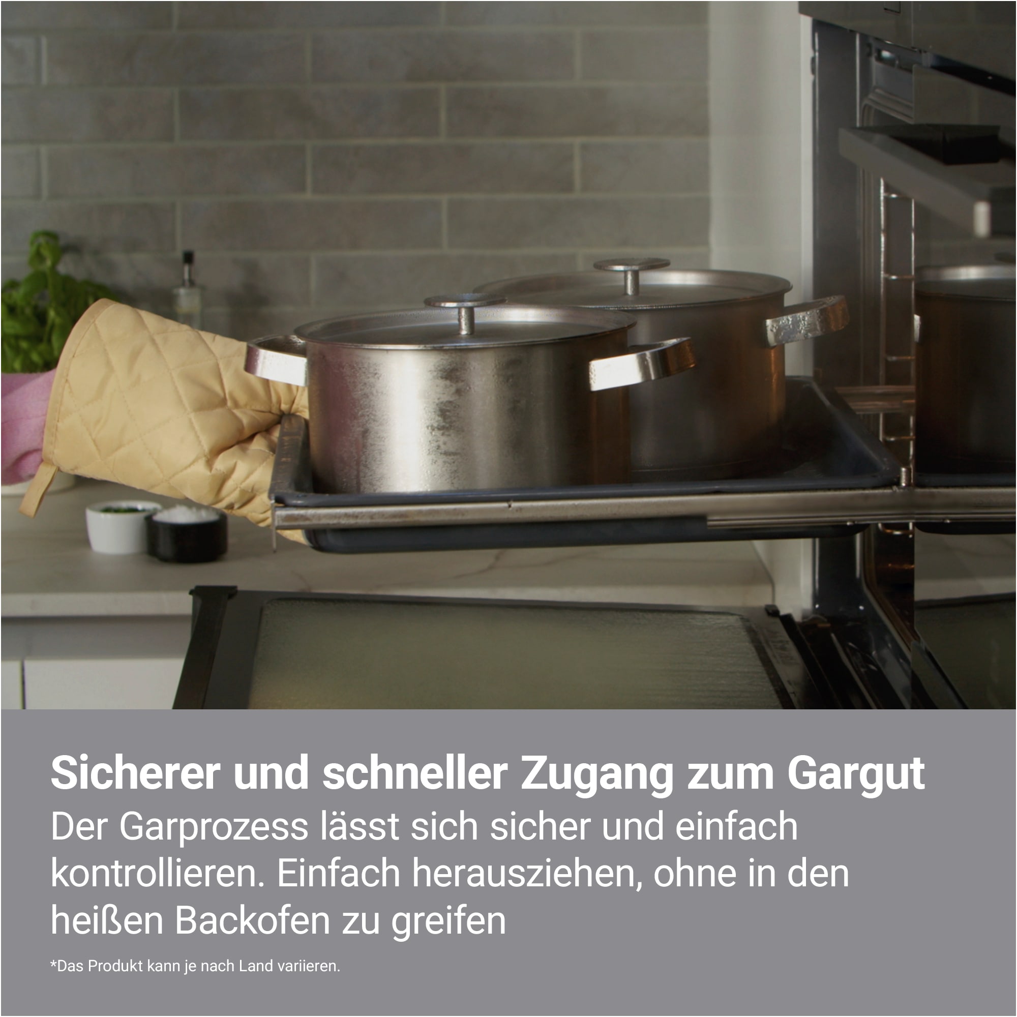 Die AEG FlexiRunners™ Vollauszüge ermöglichen dir eine noch komfortablere Zubereitung köstlicher Ofengerichte. Ob würzen, Zutaten wenden oder den Gargrad prüfen, mit den Teleskopschienen ziehst du das Gericht sicher aus dem Ofen heraus und hast beide Hände frei für weitere Zubereitungsschritte.