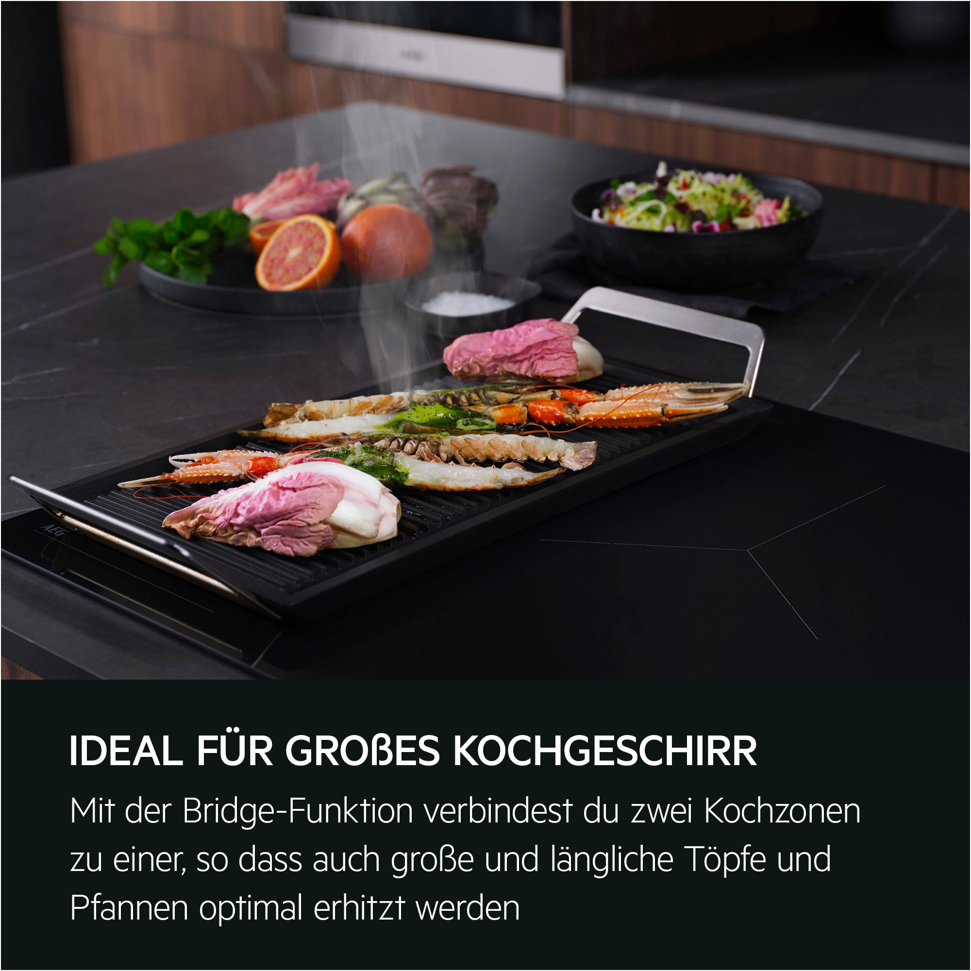 Bridge-Funktion: Verbindet zwei Kochzonen zu einer – für große Töpfe und Pfannen