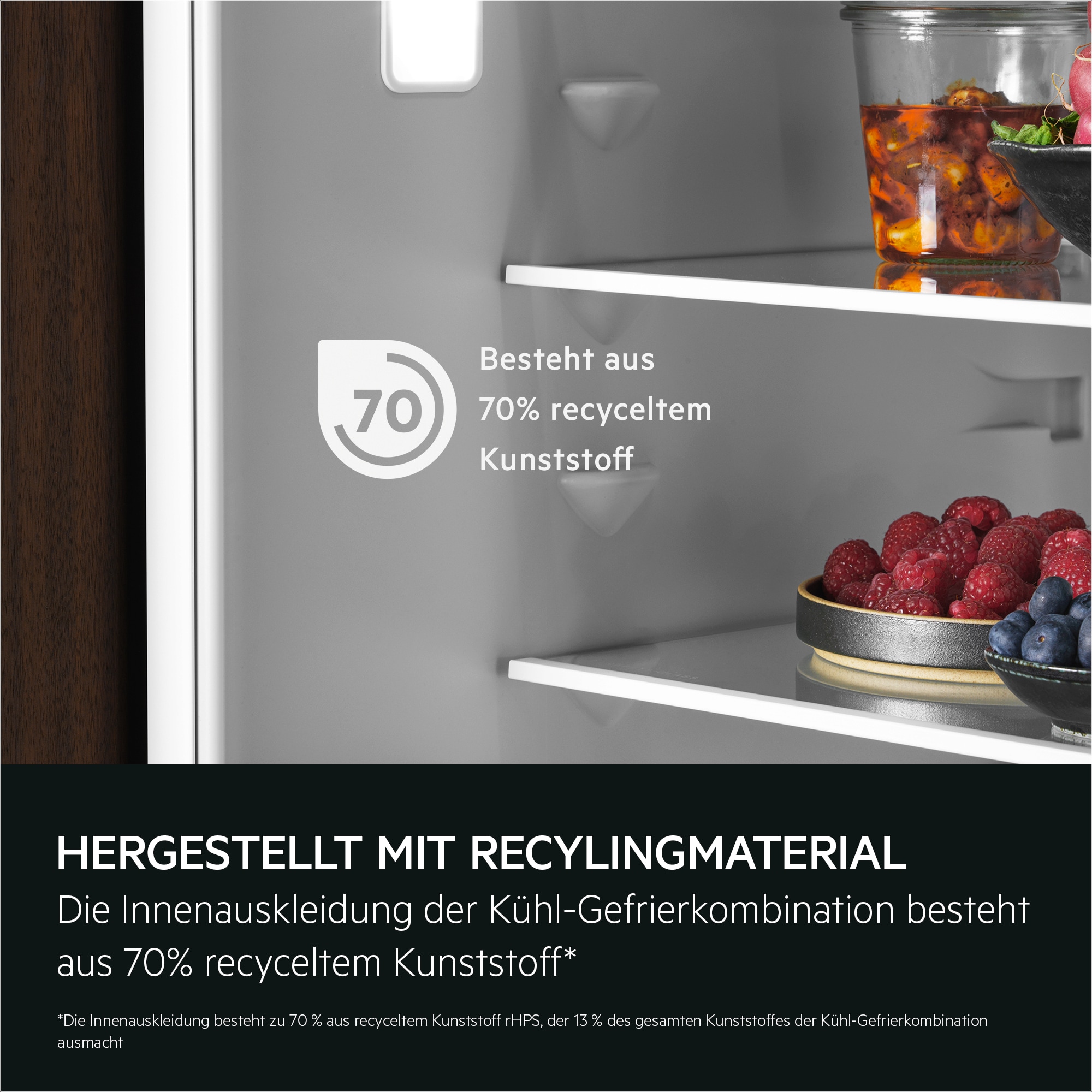*Die Innenauskleidung besteht zu 70 % aus recyceltem Kunststoff, der 13 % des gesamten Kunststoffes des Kühlschranks ausmacht.