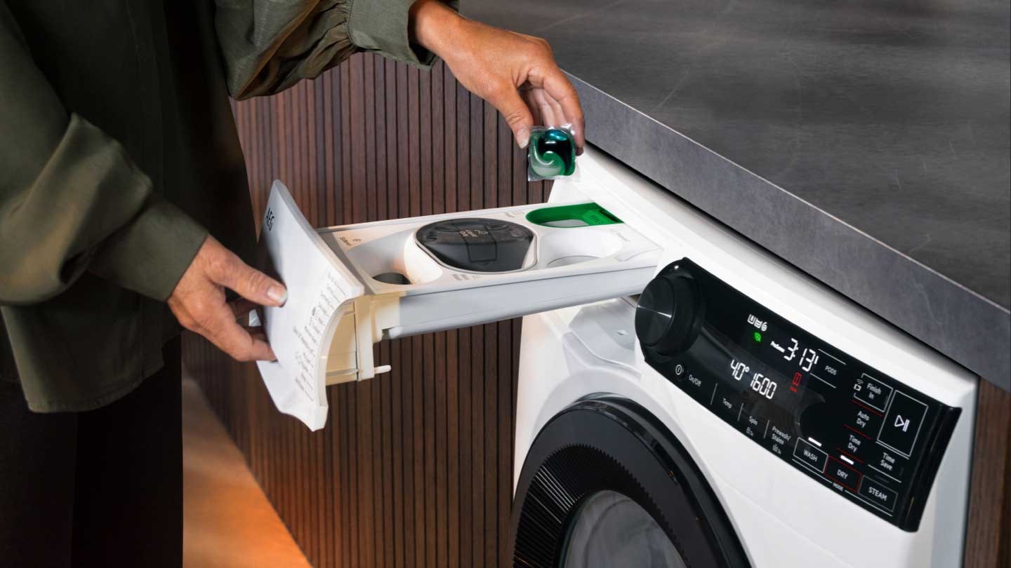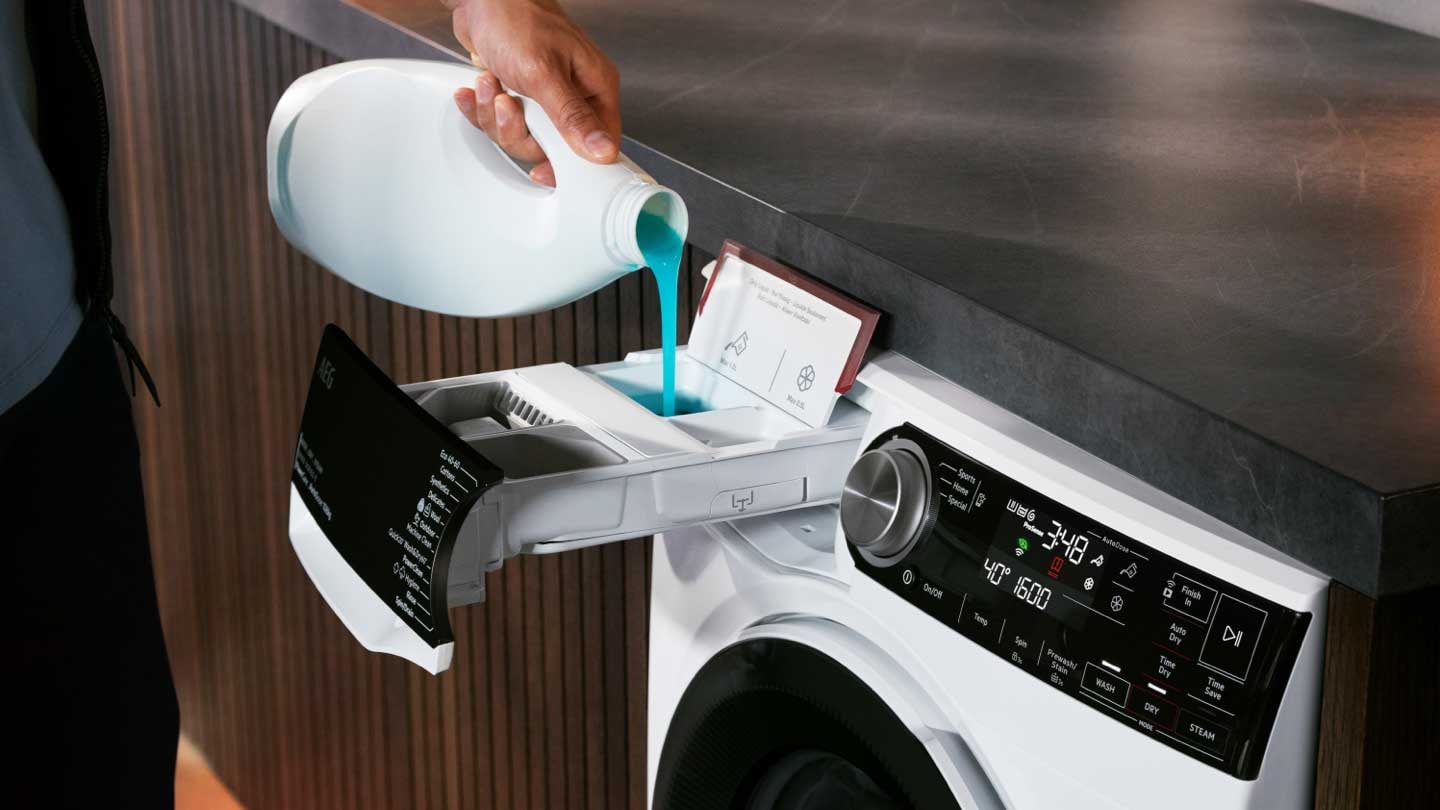 ** Gemäß einer internen Testmethode für die Waschmittelmenge, die für eine 2-kg-Ladung mit AutoDose im Vergleich zu einer durchschnittlichen manuellen Dosierung verwendet wird.