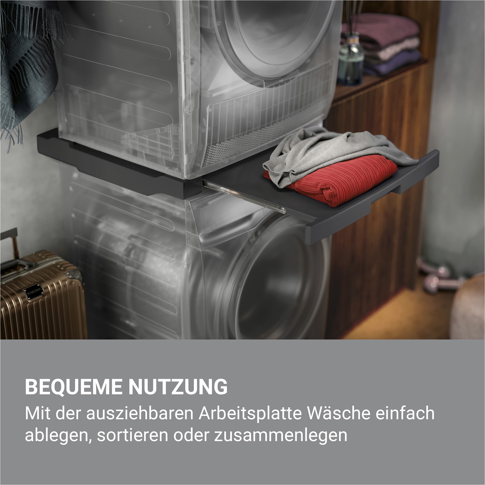 Stacking kit with pull out shelf dark grey