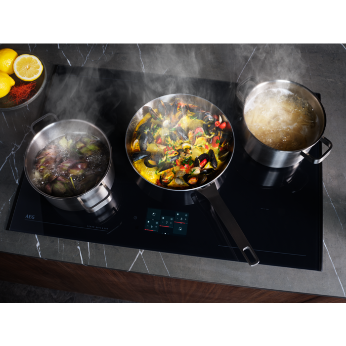 Die 6000 Hob2Hood® Dunstabzugshauben passen in Kombination mit einem passenden AEG Kochfeld automatisch die Lüftergeschwindigkeit und Beleuchtung an. Genieße frische und saubere Küchenluft – ohne die Funktionen manuell steuern zu müssen.
