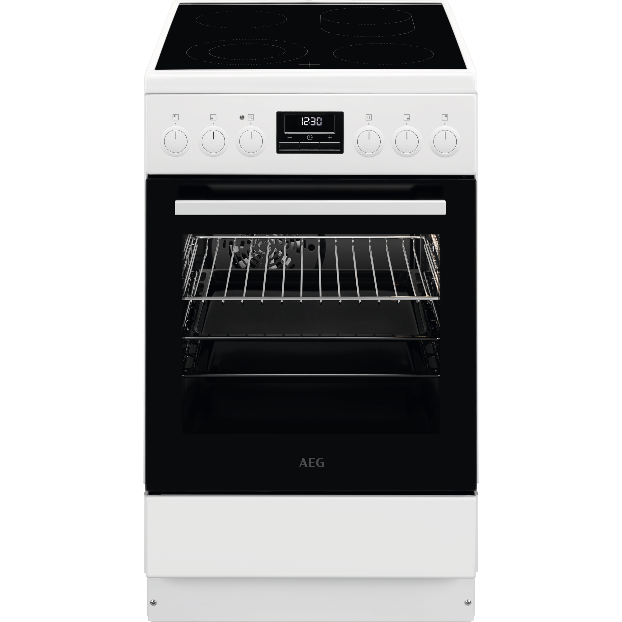 AEG CCB5449OBW 50 cm Standherd mit Glaskeramik-Kochfeld / Bräterzone / Mehrkreiskochzone / Versenkknebel / Grillfunktion / Display mit Uhr / A
