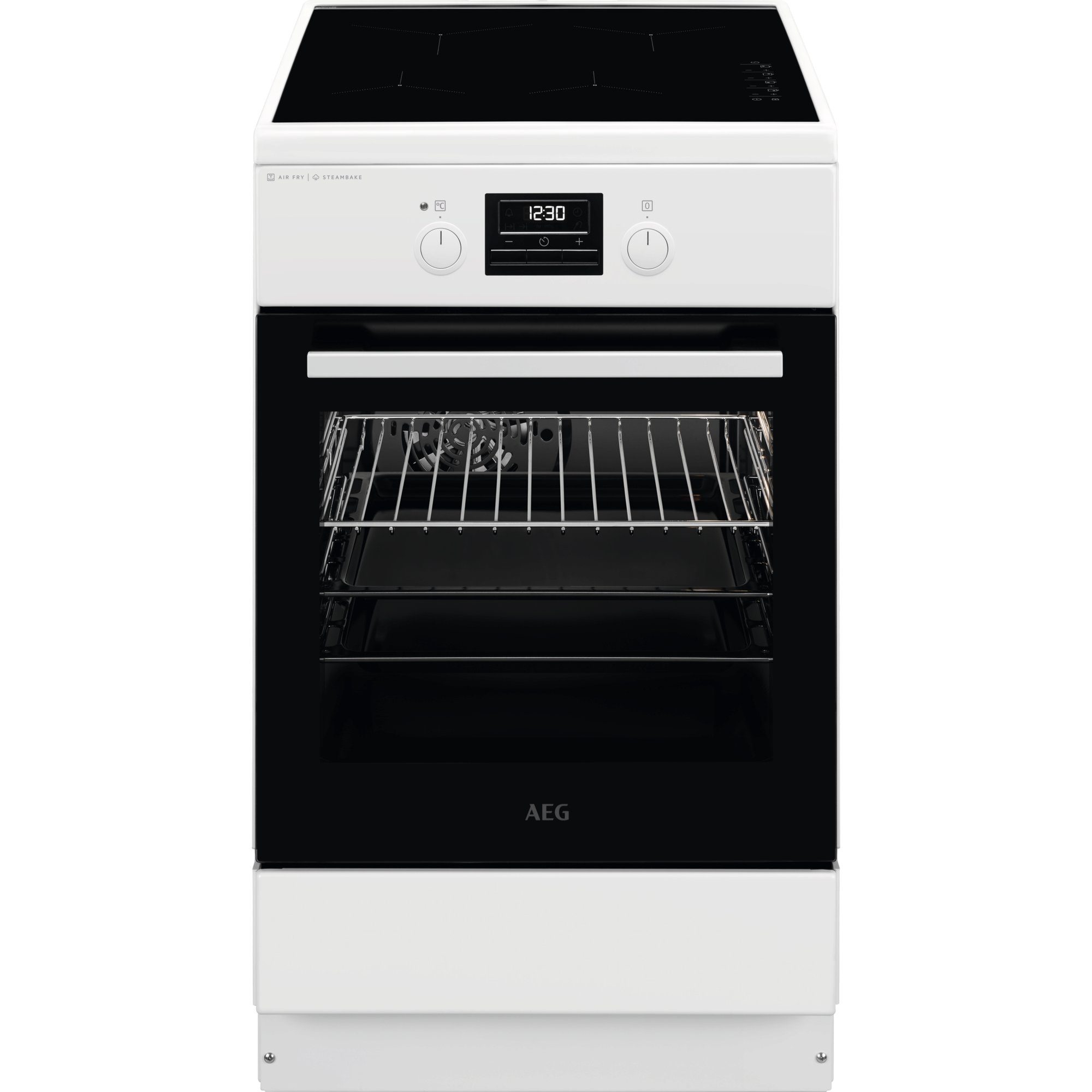 AEG CIB56494BW 50 cm Standherd mit Induktions-Kochfeld / SteamBake – mit Feuchtigkeitszugabe / Versenkknebel / Grillfunktion / Display mit Uhr / Kindersicherung / A