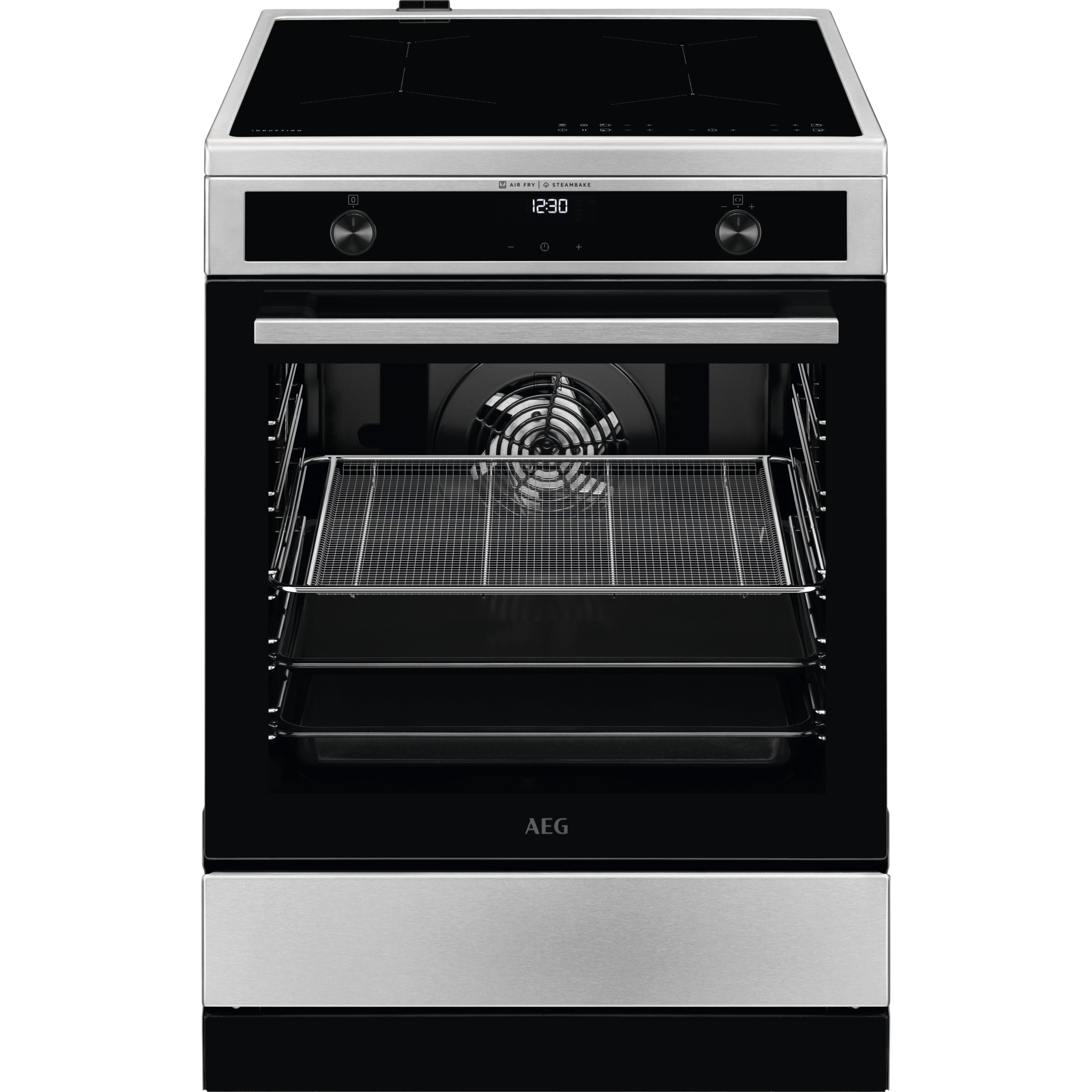 AEG CIB6643BBM 60 cm Standherd mit Induktions-Kochfeld / SteamBake – mit Feuchtigkeitszugabe / Hob²Hood / Touch-Bedienung / Grillfunktion / Display mit Uhr / Kindersicherung / A