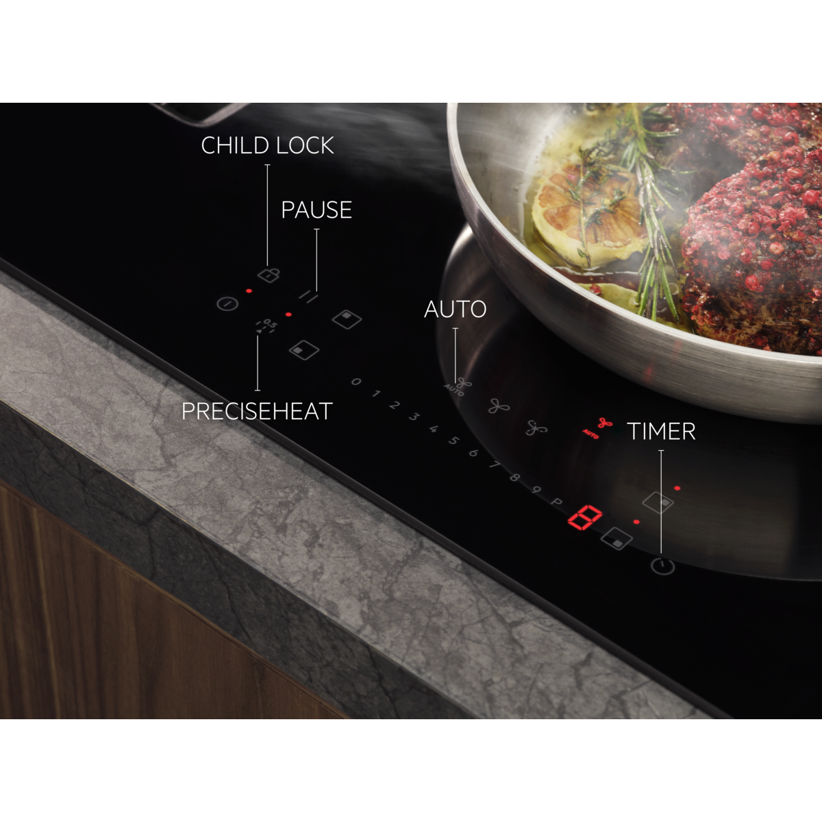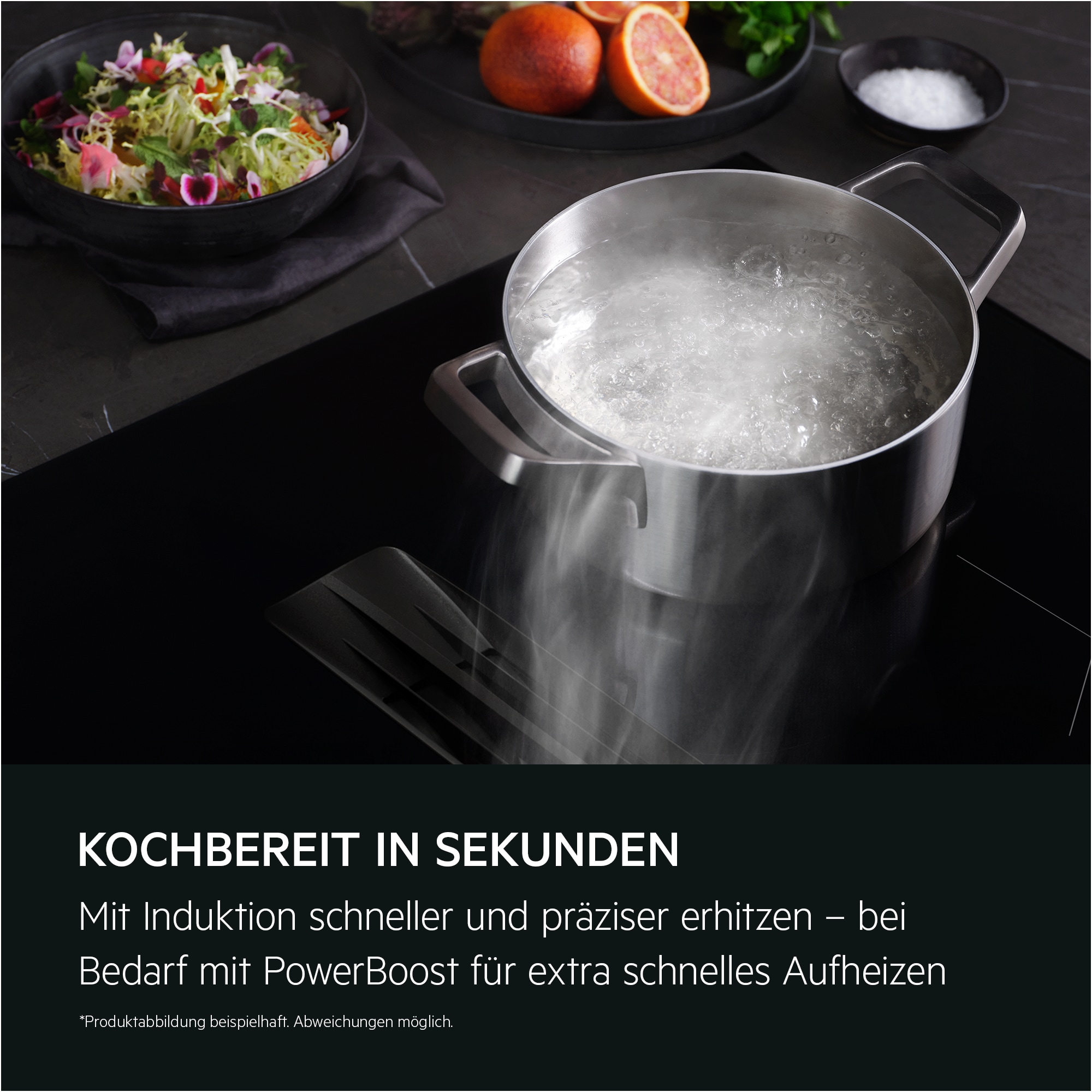 Weniger Warten, weniger Kochgerüche. Die AEG Fast & Powerful Induktionskochfelder der Serie 5000 vereinen schnelles und effizientes Induktionskochen mit dem Komfort eines integrierten Dunstabzugs.
