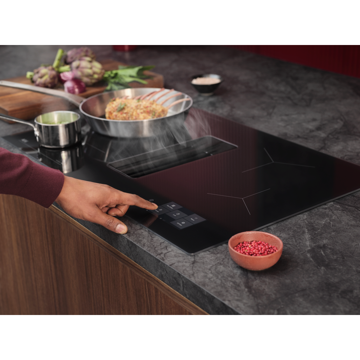 Unsere energieeffizientesten Induktionskochfelder mit integriertem Dunstabzug, sparen Energie und ermöglichen herausragende Kochergebnisse