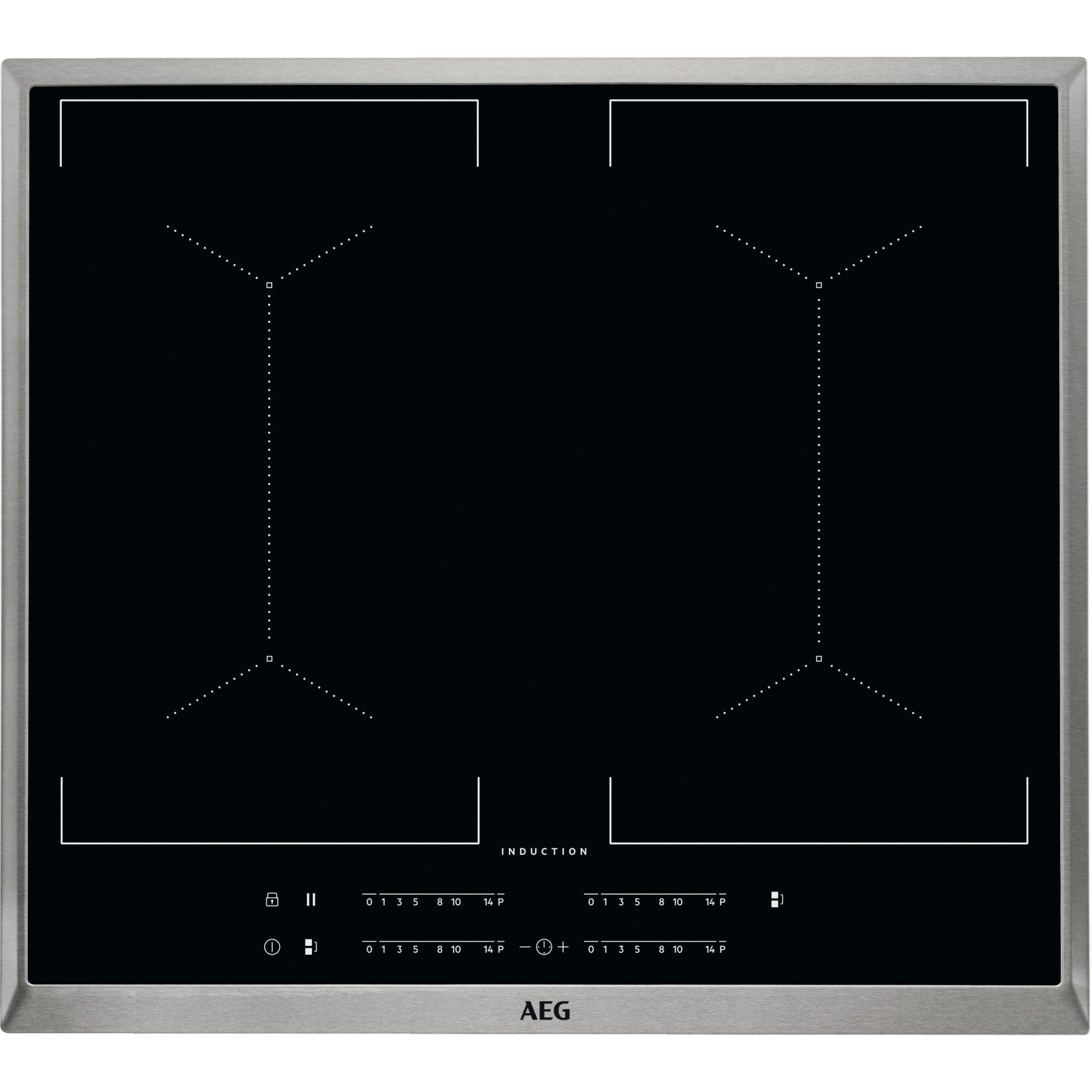 AEG IKS6445XXB Autarkes Kochfeld / Induktion 6000 Flex / / Slider-Bedienung / 60 cm / Edelstahlrahmen / 4 Kochzonen / Bridge-Funktion / Powerfunktion / Kindersicherung