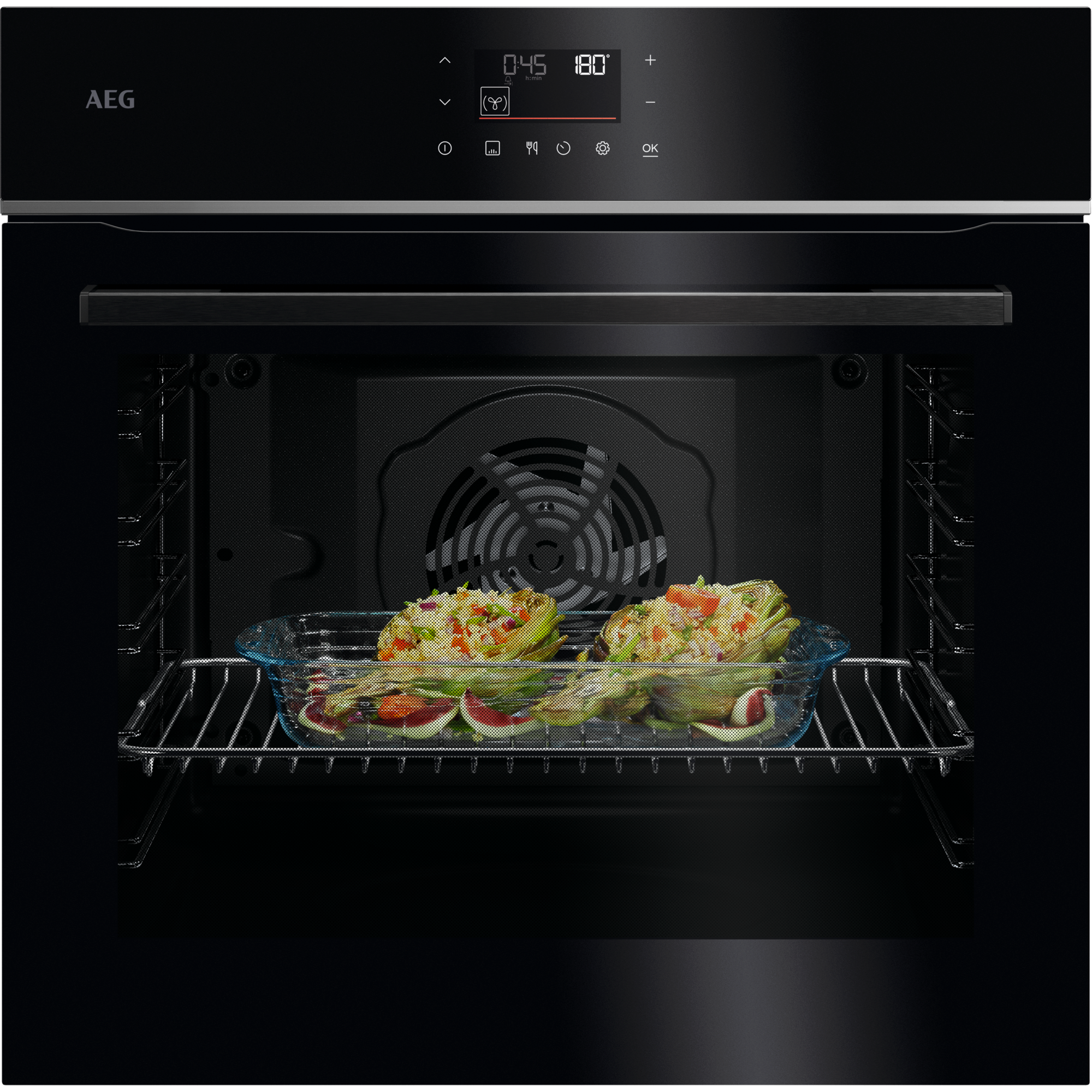 Der Backofen mit AirFry-Funktion ist mit einem speziellen AirFry Backrost ausgestattet. Dieser ermöglicht eine optimale Heißluftzirkulation und sorgt für knusprige und gleichmäßig gegarte Speisen wie Pommes frites - mit nur wenig oder ganz ohne Zugabe von Öl.