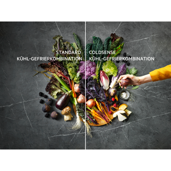 Die 5000 ColdSense Kühl-Gefrierkombinationen stellen die richtige Temperatur nach dem Öffnen der Tür dank präziser Sensoren schnell wieder her. Das hilft Temperaturschocks sowie Lebensmittelverderb zu vermeiden und bewahrt die Qualität deiner Lebensmittel.