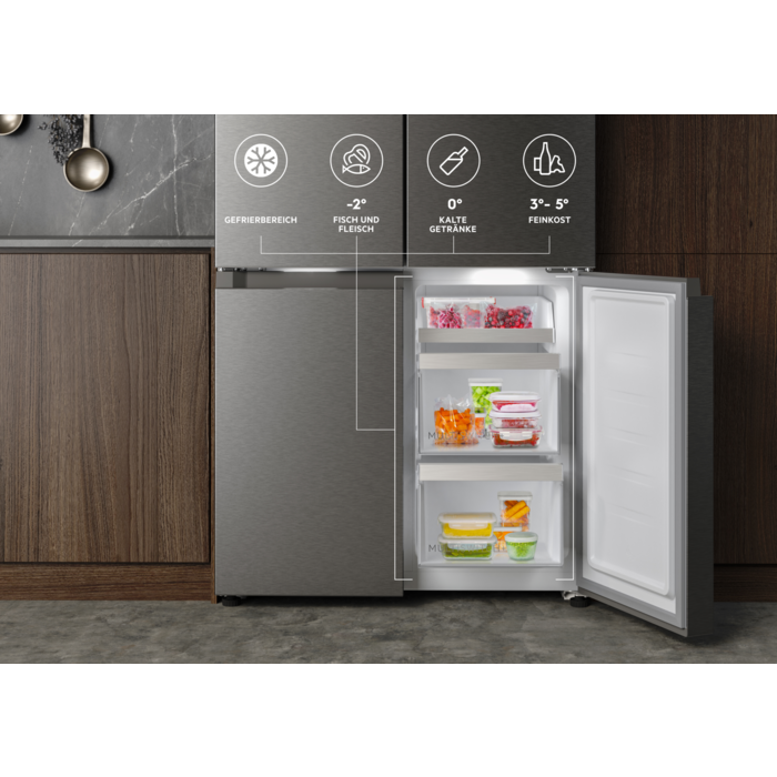 Die 9000 French-Door Kühlschränke mit MultiSwitch+ Zone verfügen über ein konvertierbares Fach, in dem du die Temperatur von -20 °C bis 5 °C flexibel einstellen kannst. Damit lagern alle deine Lebensmittel unter idealen Bedingungen - gekühlt oder gefroren.