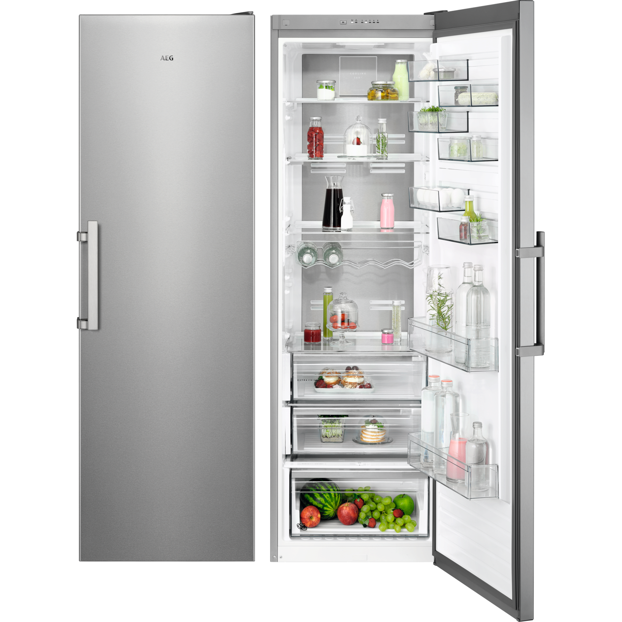 Die AEG 8000 Kühlschränke mit 360° Cooling-Technologie bewahren zuverlässig die Frische deiner Lebensmittel. Zahlreiche Luftkanäle und die Edelstahlrückwand stellen nach dem Öffnen der Tür die Temperatur schneller wieder her und sorgen für eine optimale Verteilung der Kühltemperatur.