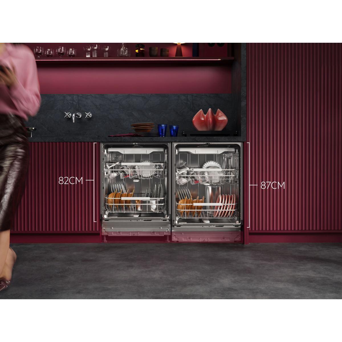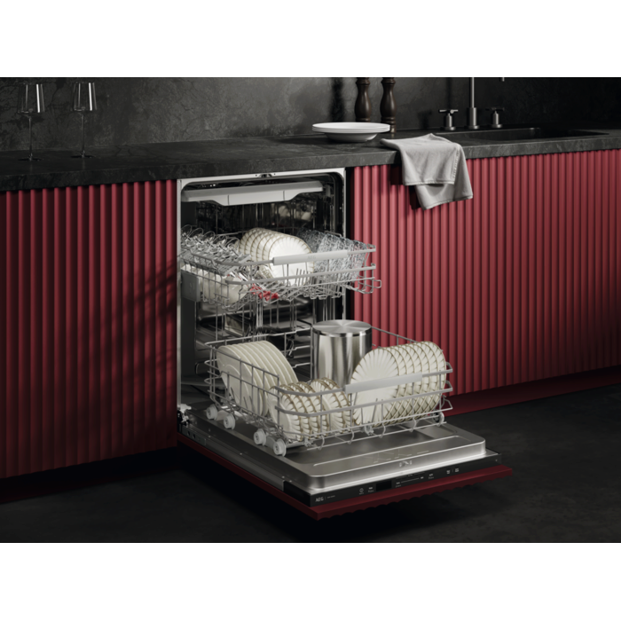 AEG Geschirrspüler der Serie 7000 XXL verfügen über 5 cm mehr Platz und passen unter eine 90 cm hohe Arbeitsplatte. Sie reinigen effektiv, dank des neuen hocheffizienten Wassersystems bei einem geringen Wasserverbrauch von nur 8.4 Litern.