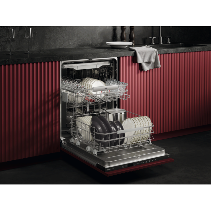 AEG Geschirrspüler der Serie 8000 XXL verfügen über 5 cm mehr Platz und passen unter eine 90 cm hohe Arbeitsplatte. Das hocheffiziente Wassersystem entfernt hartnäckige Speiserückstände bei einem Wasserverbrauch von nur 8,4 Litern. Die Körbe verfügen über klappbare Bereiche und Glashalterungen.