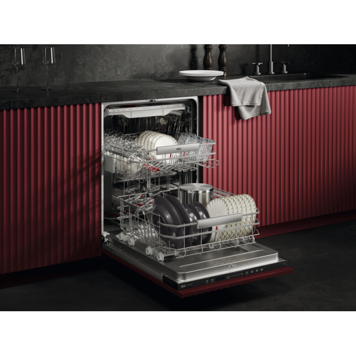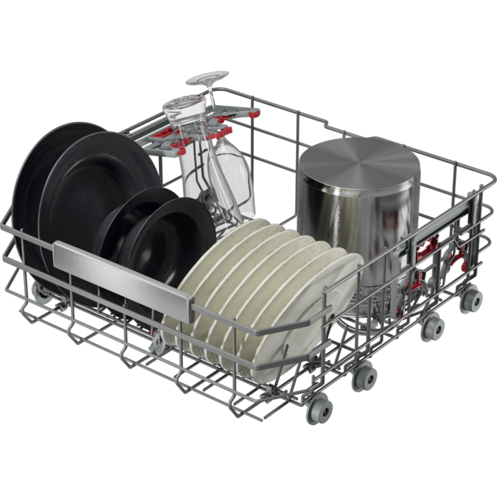 AEG Geschirrspüler der Serie 9000 XXL verfügen über 5 cm mehr Platz, passen unter eine 90 cm hohe Arbeitsplatte, und über multifunktionale Körbe sowie Halterungen für Gläser und Backbleche. Das Wassersystem entfernt hartnäckige Speiserückstände bei einem Wasserverbrauch von nur 8.4 Litern.