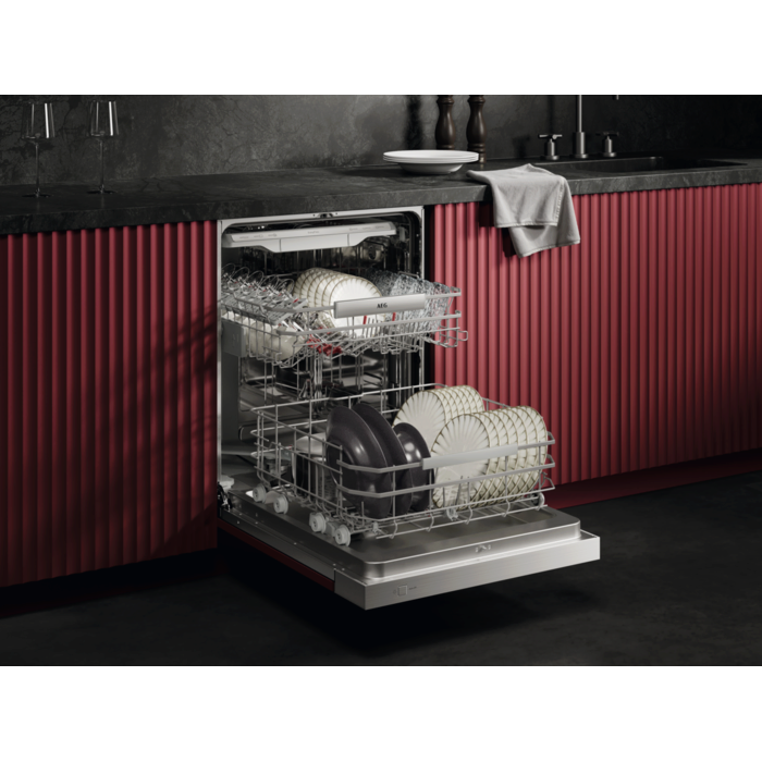 AEG Geschirrspüler der Serie 8000 sorgen für eine kraftvolle Reinigung, selbst bei hartnäckigen Speiserückständen wie Eingebranntem. Die vielseitigen, leichtläufigen Körbe verfügen über klappbare Bereiche und spezielle Glashalterungen. Das hocheffiziente Wassersystem verbraucht nur 8,4 Liter.