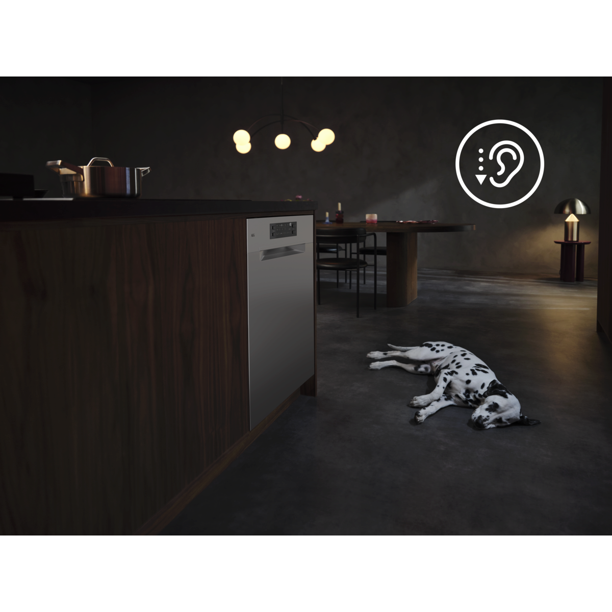 AEG Geschirrspüler der Serie 7000 verfügen über eine hohe Wassereffizienz und effektive Reinigungsleistung bei einem geringen Wasserverbrauch von nur 8,4 Litern dank des neuen Wassersystems. Die flexiblen Körbe mit klappbaren Bereichen sorgen für ein müheloses Beladen.