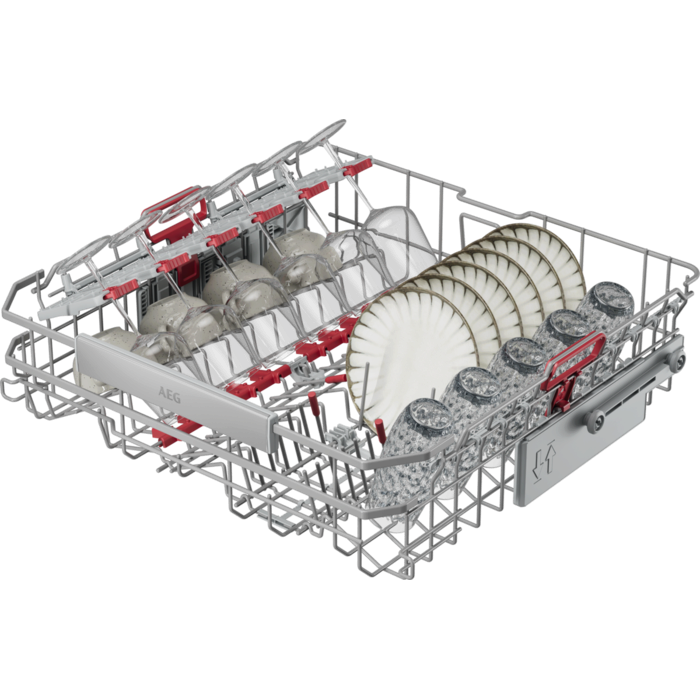AEG Geschirrspüler der Serie 8000 sorgen für eine kraftvolle Reinigung, selbst bei hartnäckigen Speiserückständen wie Eingebranntem. Die vielseitigen, leichtläufigen Körbe verfügen über klappbare Bereiche und spezielle Glashalterungen. Das hocheffiziente Wassersystem verbraucht nur 8,4 Liter.