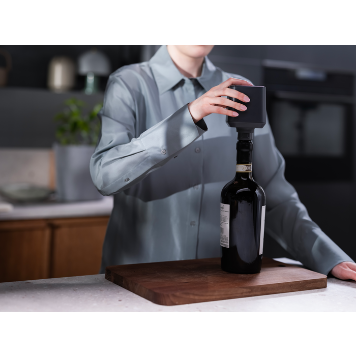 ³ Basierend auf internen Tests, bei denen zwei Weinaroma-Typen in mit Vakuum-Weinkorken und normalen Weinkorken verschlossenen Flaschen verglichen wurden, sowie internen Geschmackstests, bei denen vier Tage im Kühlschrank im Vakuum gelagerter Lachs mit in einem normalen Behälter aufbewahrten Lachs verglichen wurde.
