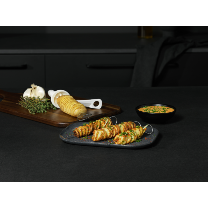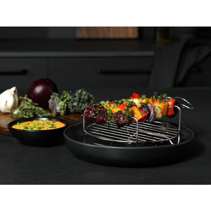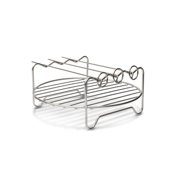 Das hochfunktionale Erweiterungsset für die Heißluftfritteuse bietet Ihnen mit einer Backform, einem Rost, Spießen und einem Spiralschneider praktisches Zubehör für müheloses Backen, Grillen, Braten und Frittieren in einem kompletten Set