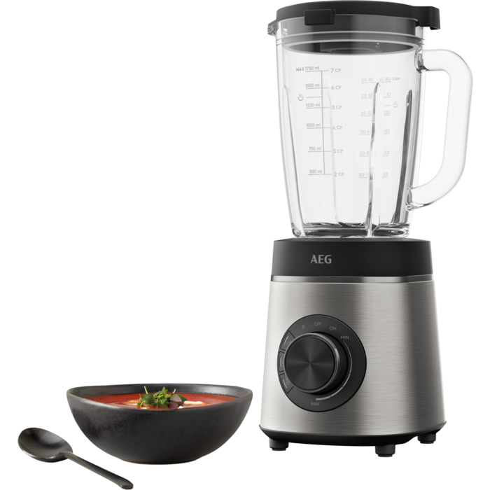 *Im Vergleich zum AEG Deli 3 Standmixer (TB3-1-4GB) und nach internem Test (2021) durch Messung der Rückstandsmenge über 1 mm bei maximaler Geschwindigkeit für 1 Minute unter Verwendung der Standardrezeptur aus IEC60335-2-14