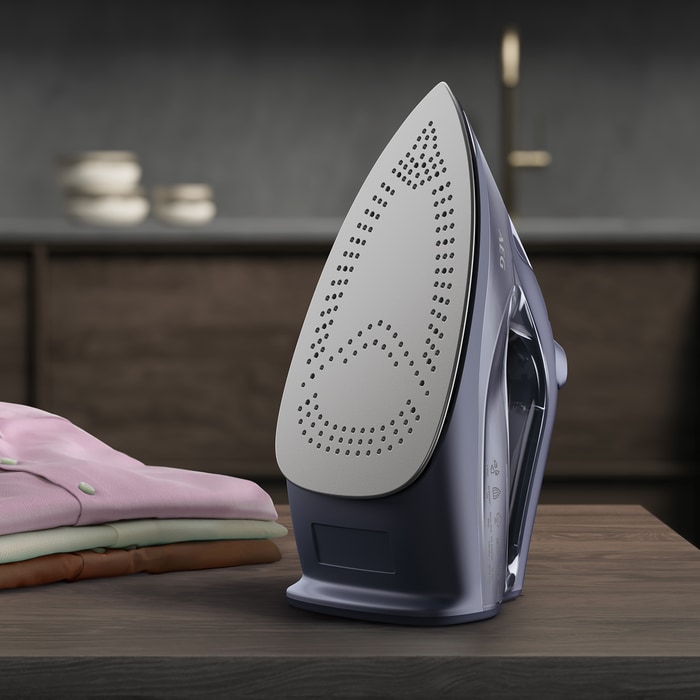 Dank seiner gleichmäßigen Dampfverteilung können Sie mit dem Delicate 6000 Dampfbügeleisen ganz schnell und einfach Knitterfalten aus Ihren Kleidungsstücken entfernen. Der eingebaute Sensor erkennt, wenn Ihr Bügeleisen unbeaufsichtigt ist, und die Restwärmeanzeige der Bügelsohle erkennt, wenn das Bügeleisen heiß ist.