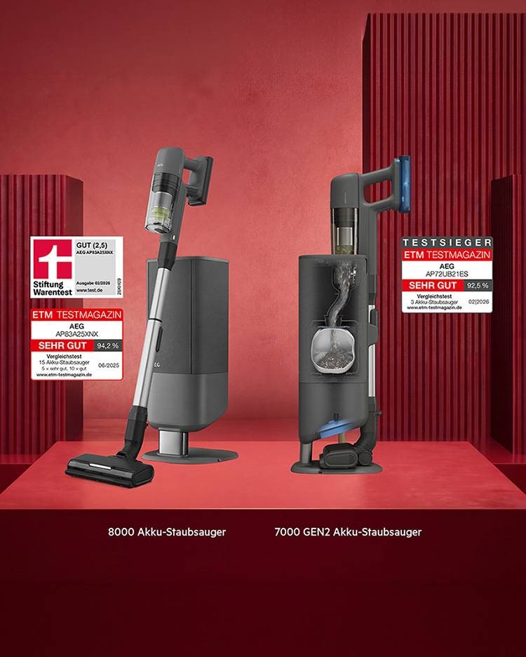 AEG Akku-Staubsauger überzeugen im Test auf ganzer Linie: Stiftung Warentest und das ETM Testmagazin prämieren gleich zwei Geräte mit Absaugstation. Entdecke, warum AEG in unabhängigen Tests überzeugt und wie die ausgezeichneten Modelle deinen Alltag spürbar erleichtern.