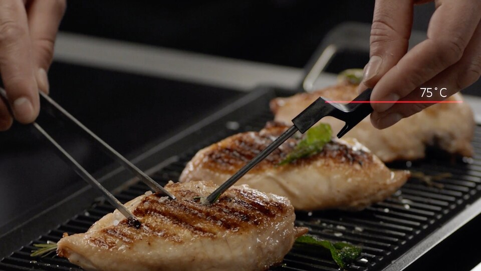 So gelingt jedes Gericht perfekt, da immer die Kerntemperatur der zubereiteten Lebensmittel gemessen und die Leistung über die präzise Temperaturregelung automatisch dem Bedarf angepasst wird.