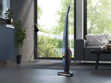 Die freistehende Parkfunktion, der 0,8 Liter Staubbehälter sowie 3 Leistungsstufen gehören zur Grundausstattung. Zudem ist die Bodendüse mit Doppelgelenk, LED-Frontlichtern und einer patentierten Selbstreinigung der Bürstenrolle ausgestattet.
