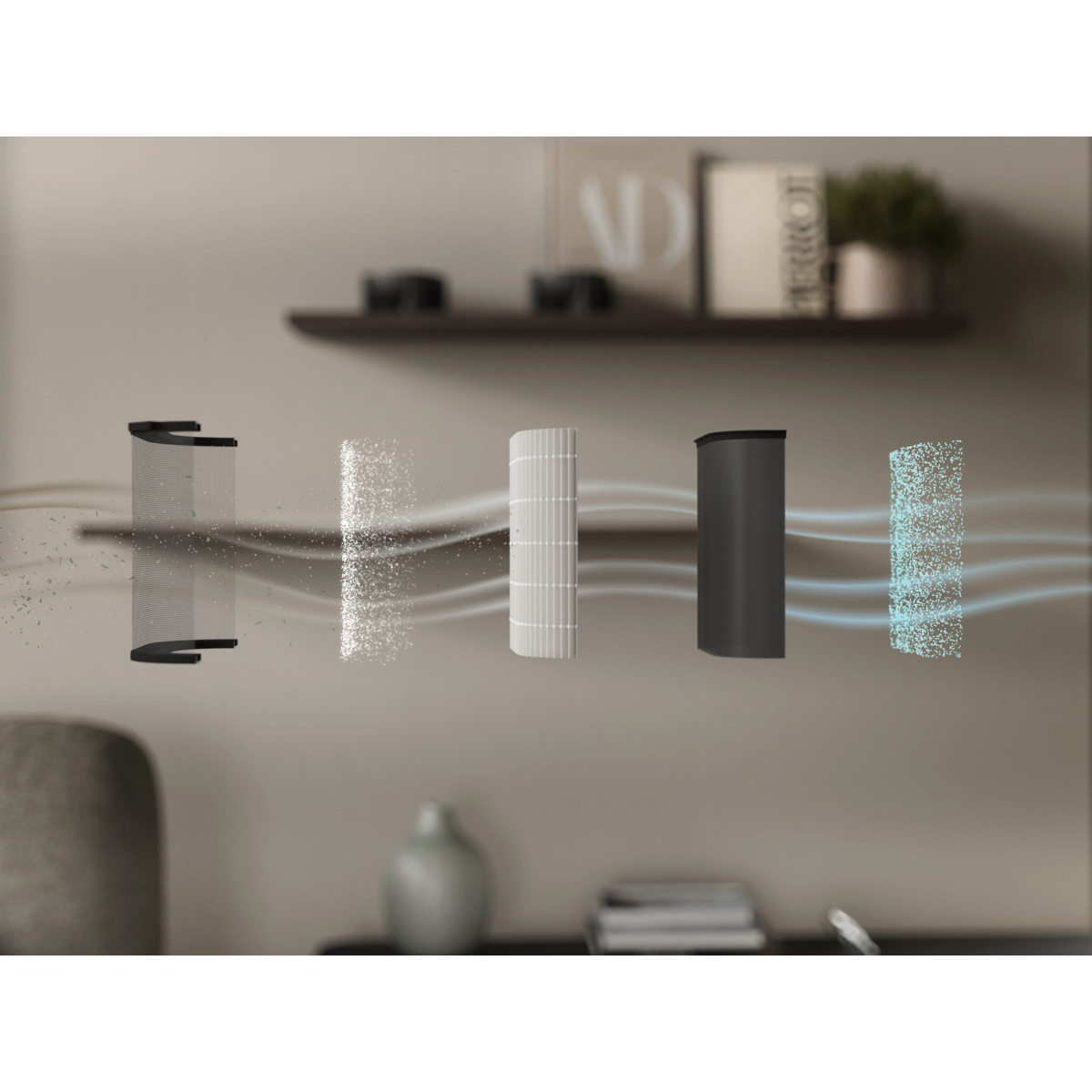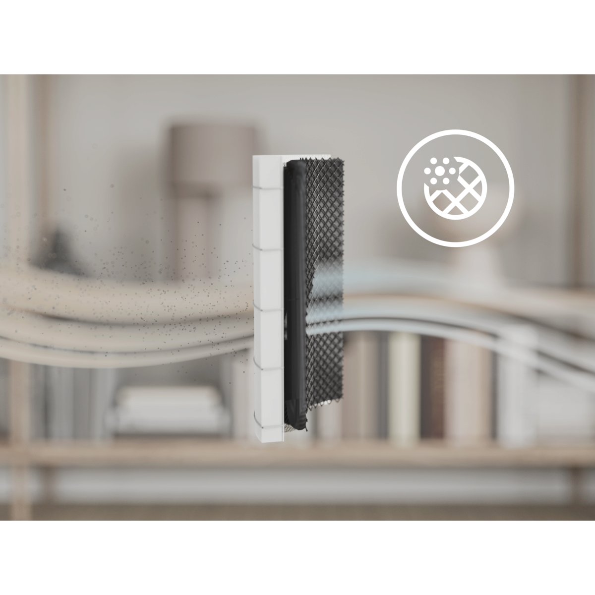 Reduziert gezielt PM2,5 und ultrafeine Luftschadstoffe. Ultrafeines Filtermaterial, das in HEPA-13-Filtern* verwendet wird und bis zu 99,97 % der in der Luft befindlichen Schadstoffe filtern kann.