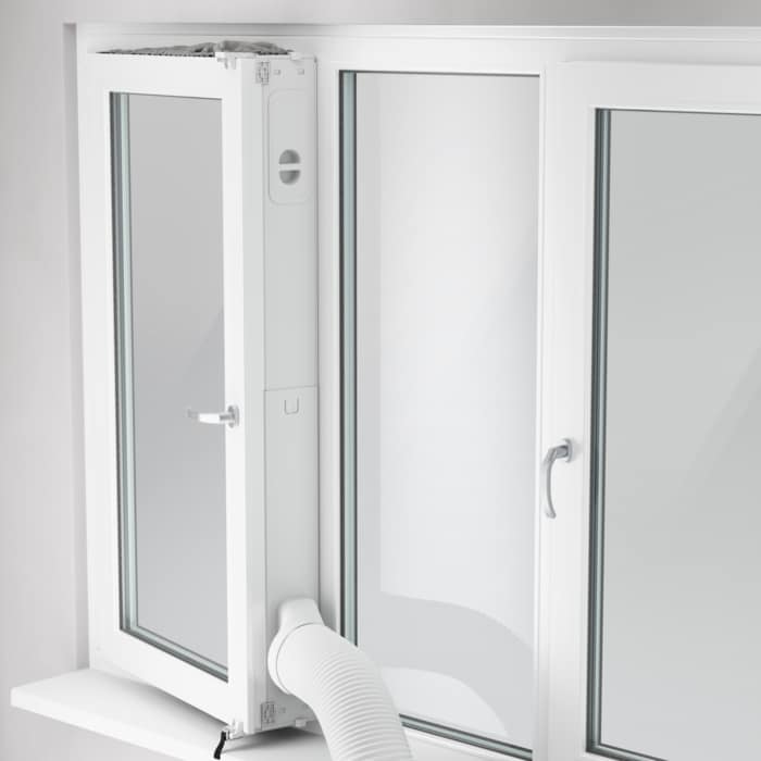 Werkzeuglose Installation für Klappfenster, für eine schnellere und energieeffizientere Kühlung des Raumes. Schnellverschlussklammern und dehnbare Stoffseitenabdeckungen ermöglichen eine schnelle und einfache Installation. Entwickelt, um warme Luft draußen zu halten, um bis zu 28 % Energie zu sparen und den Raum bis zu 50 % schneller zu kühlen.