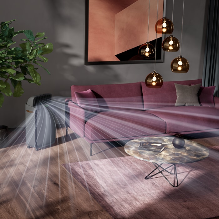 Pure Multi 7000 2in1 Luftreiniger mit leistungsstarker Filtration, Ventilatorfunktion und einfacher Steuerung per App. Richte die Luftstromführung ganz individuell aus: Die oszillierenden Lamellen und die kippbare Haube ermöglichen es dir, die Richtung des gereinigten Luftstroms anzupassen.
