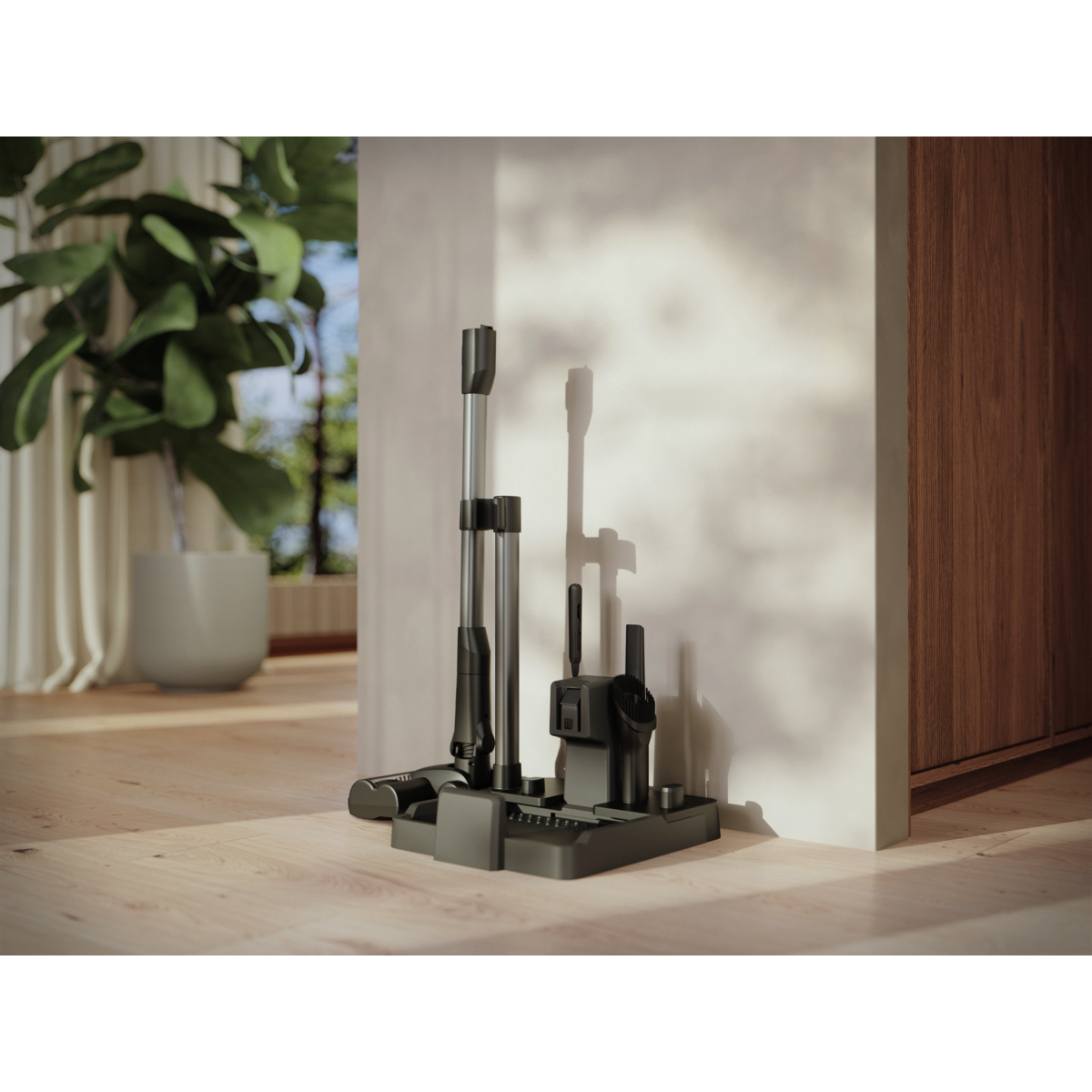 Mit dem zusätzlichen Zubehörset kannst du schnell und einfach von Nass- auf Trockenreinigung umstellen. Und in der Ladestation lässt sich das gesamte Zubehör bequem verstauen.
