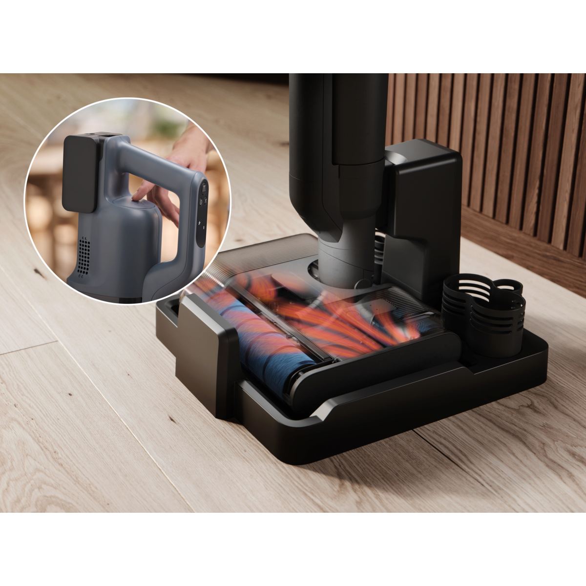 * Basierend auf internen Tests mit Ketchupflecken (Trockenzeit von zwei Stunden) und Kaffeeflecken (Trockenzeit 24 Stunden) mit Vorwärts- und Rückwärtszügen auf Fliesen.