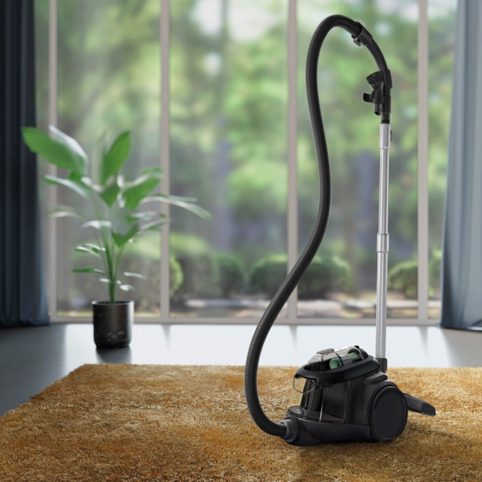 Mit innovativer Zyklontechnologie ausgestattet kombiniert der ergonomisch und kompakt gestaltete beutellose Staubsauger CLEAN 6000 ÖKO maximale Leistung mit einfacher Entleerung. Das Modell ist aus 76 % recyceltem Kunststoff hergestellt.