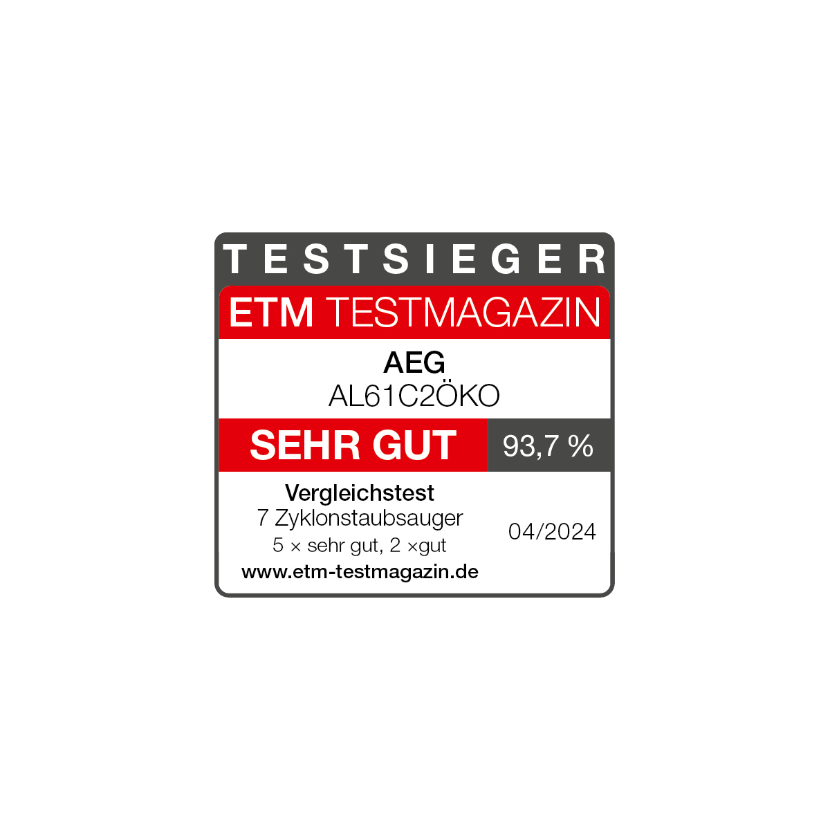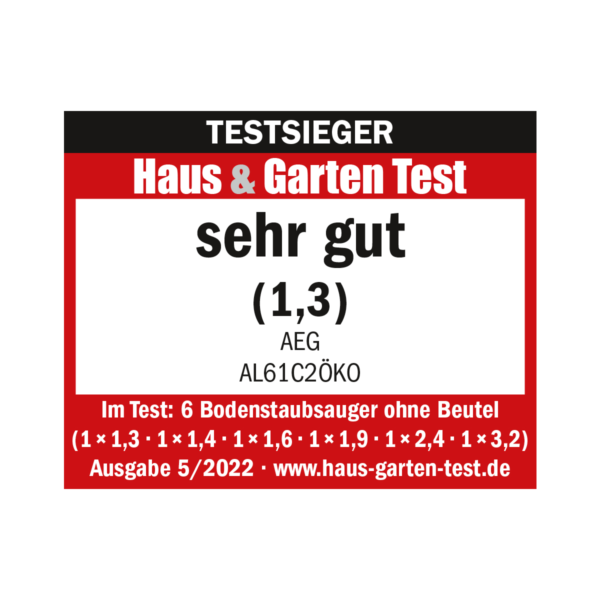 Der beutellose Staubsauger AEG AL61C2ÖKO wurde im Heft 04/2024 mit SEHR GUT bewertet.