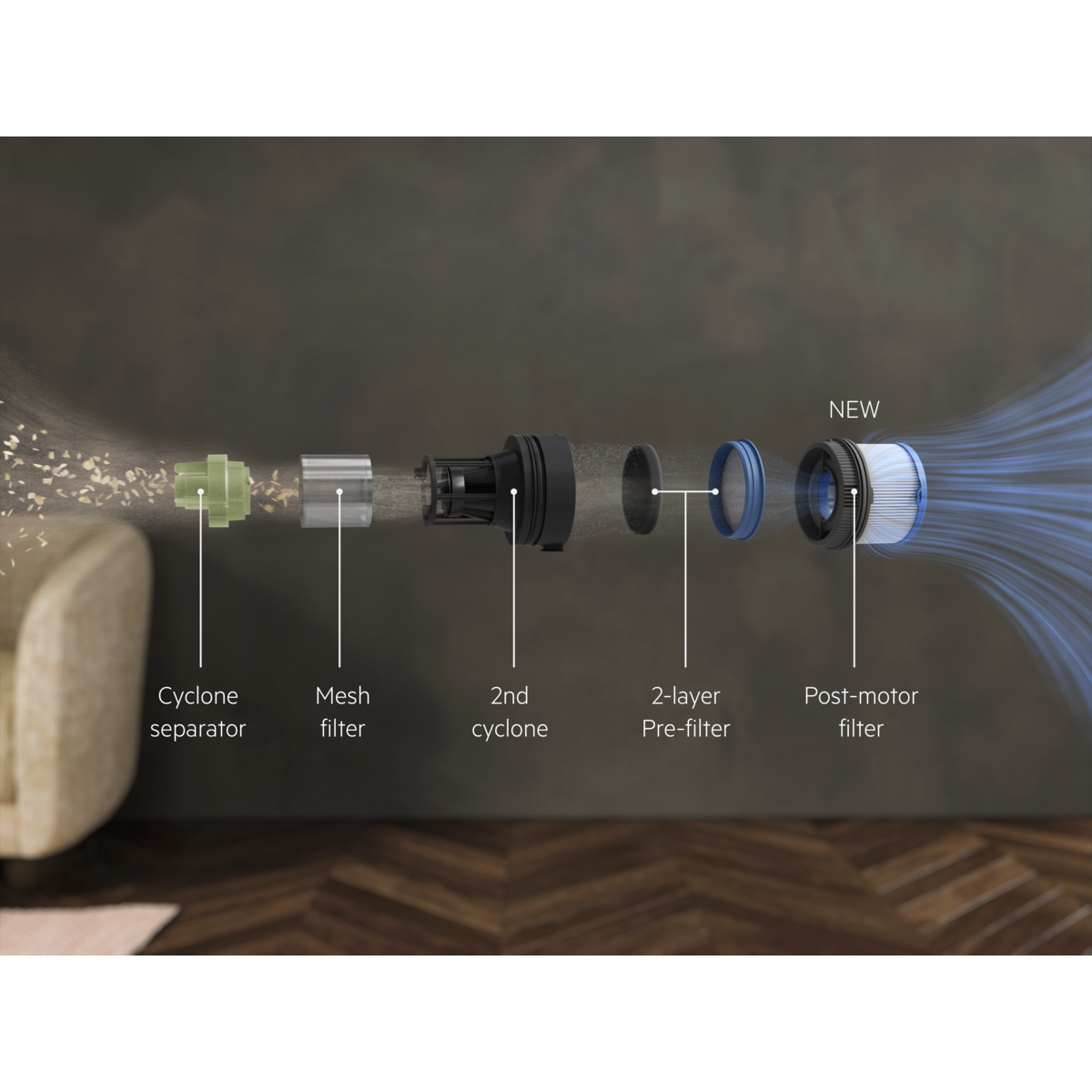 *Im Vergleich zu einem einzelnen Zyklonmotor in kabellosen Staubsaugern **Basierend auf einem internen Test nach IEC 62885-4