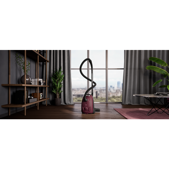Dieser kompakte Staubsauger ist einfach zu handhaben und leicht zu verstauen. Er verfügt über integriertes, hilfreiches Zubehör für die Reinigung von Möbeln und schwer zugänglichen Stellen. Der ergonomische Griff am Gerät ermöglicht ein bequemes Tragen.