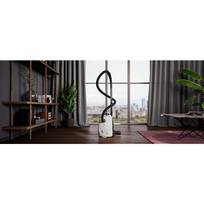 Dieser kompakte Staubsauger ist einfach zu handhaben und leicht zu verstauen. Er verfügt über integriertes, hilfreiches Zubehör für die Reinigung von Möbeln und schwer zugänglichen Stellen. Der ergonomische Griff am Gerät ermöglicht ein bequemes Tragen.