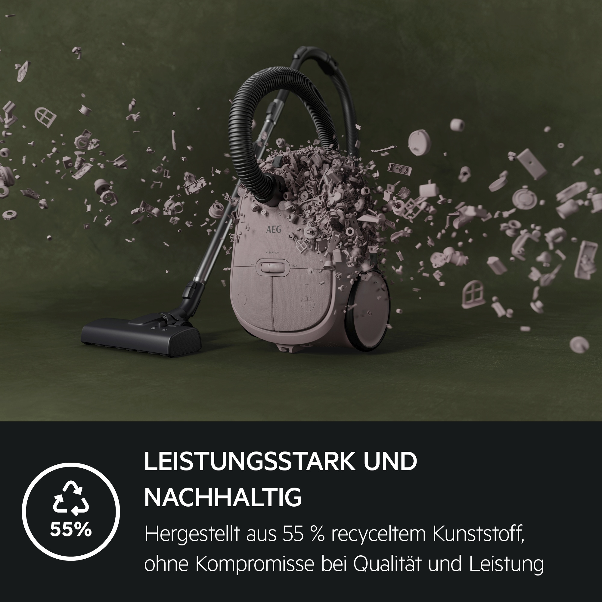 Leistungsstark und nachhaltig. Hergestellt aus 55 % recyceltem Kunststoff.