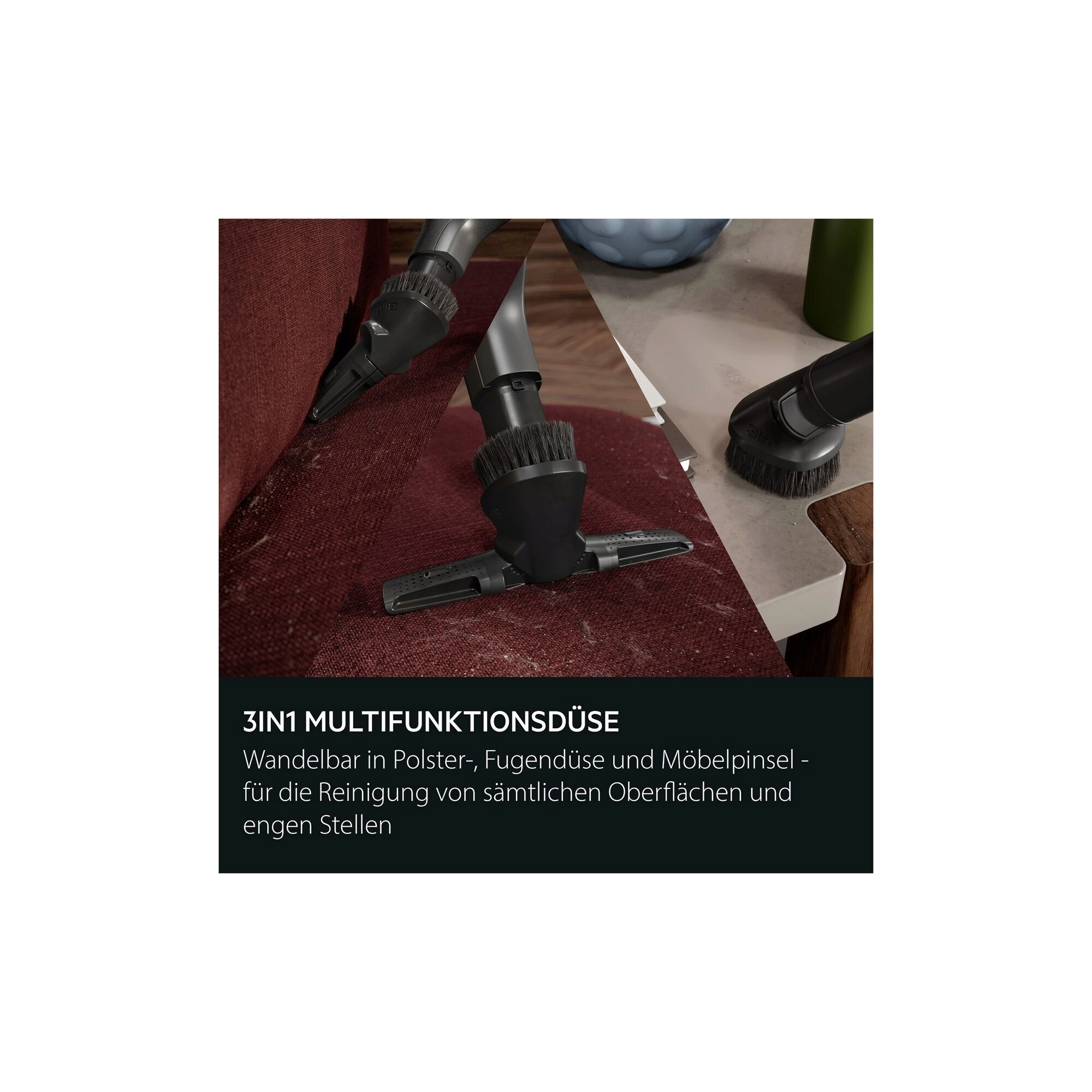 Erlebe herausragende Ergebnisse dank fortschrittlicher Reinigungstechnologie, die für maximale Effizienz entwickelt wurde. Das ergonomische Design, das innovative Düsensystem und der hocheffiziente Motor sorgen gemeinsam mit dem HEPA-Filter für eine gründliche Reinigung und saubere Raumluft.